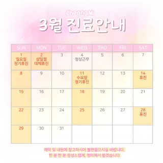 * 휴진 일은 변동될 수 있습니다.